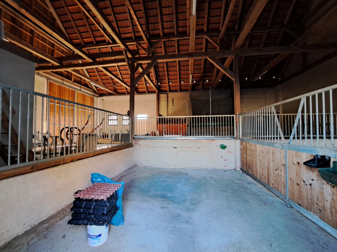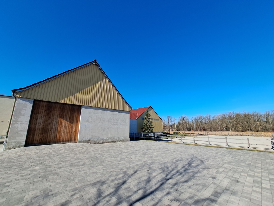 Wir bieten die Möglichkeit 2 Pferde einzustellen (Selbstversorgung), geht aber auch einzeln. Es können die zwei Paddock´s mit Paddockmatten, der Reitplatz, die Scheune mit Sattelkammer, der Anhängerplatz und die großen Koppeln genutzt werden. Es besteht die Möglichkeit der Bewässerung der Koppeln. Vom Grundstück aus kann man auch direkt in ein Naturschutzgebiete ausreiten. Im großen Stall befinden sich die beiden Pferdeboxen, die Sattelkammer und er bietet die Möglichkeit Futter, Heu etc. zu lagern.
