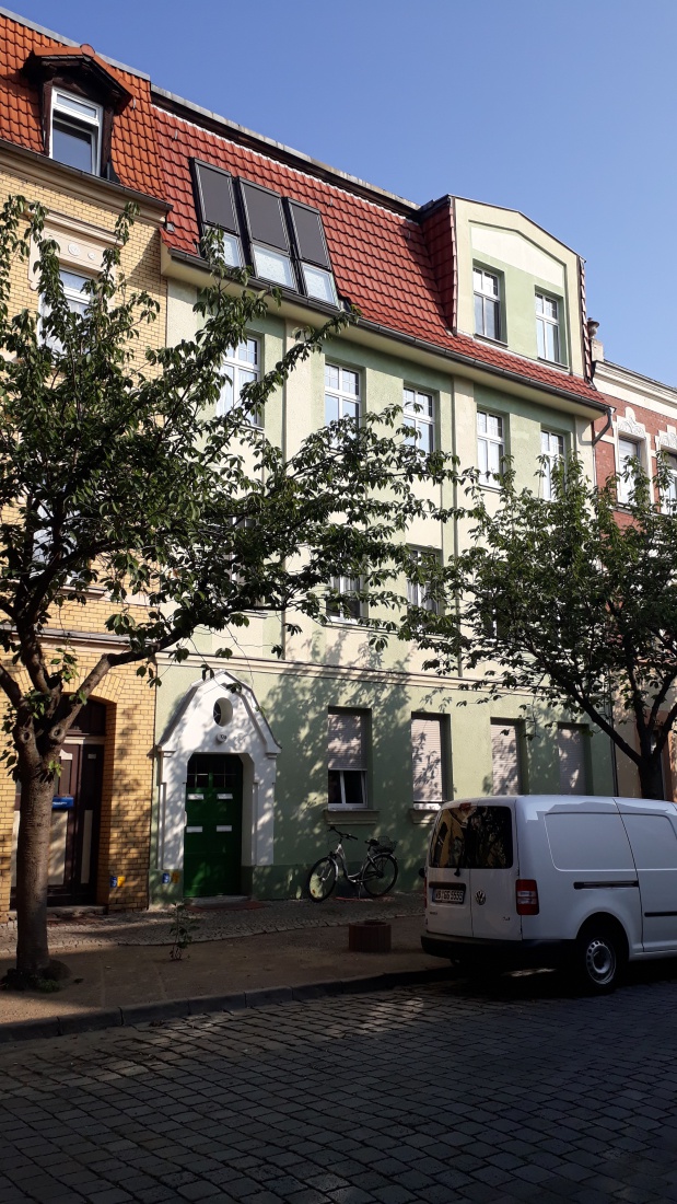 Sehr schöne große 3-Zimmer-Wohnung im Dachgeschoss. Die Wohnung ist durch die großen Fenster sehr hell und im Wohnzimmer sind Dachbalken sichtbar, die für besondere Gemütlichkeit sorgen. In der Wohnung ist Parkettboden verlegt. Das Bad verfügt über ein Fenster und eine Wanne. In der Wohnung befindet sich ein Abstellraum. Zur Wohnung gehört ein Keller. Sie wird mit einer modernen Gasetagenheizung beheizt, dadurch werden die Kosten für Gas direkt an den Versorger gezahlt. Die hier angegebenen 170,00 € sind daher geschätzt. Ein Stellplatz kann leider nicht angeboten werden. Unweit befindet sich allerdings eine Tiergarage in der noch Stellplätze frei sind und angemietet werden können.