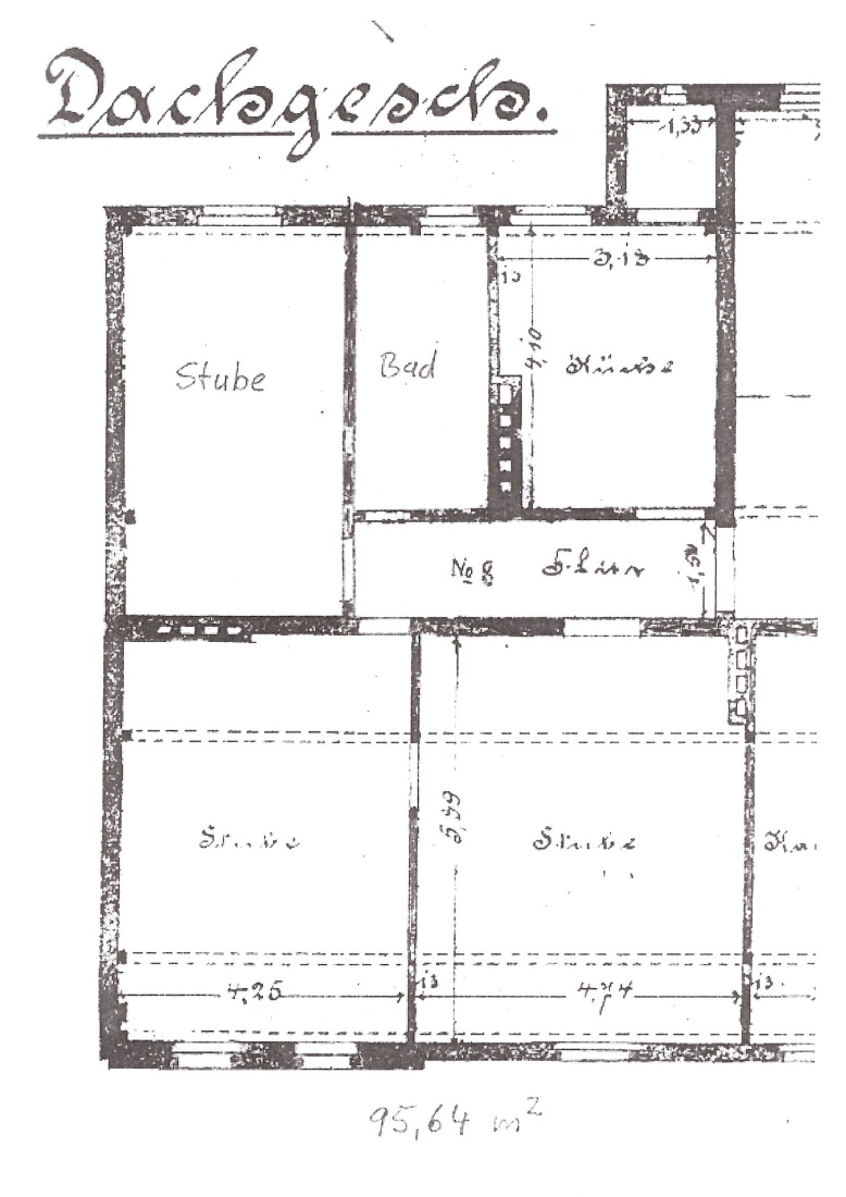 Großzügig geschnittene 3-Zimmer-Wohnung im Dachgeschoss eines denkmalgeschützen Altbauhauses. Die Wohnung ist sehr hell und freundlich. Im Wohnzimmer befindet sich ein Oberlicht, das für viel Tageslicht sorgt. Das Bad mit Fenster verfügt über eine Badewanne und eingearbeiteten Dachbalken. In der großen Küche ist ausreichend Platz für einen Esstisch. An der Küche befindet sich ein kleiner Vorratsraum. Die Wohnung ist mit Laminatboden ausgestattet. Sie wird mit einer neuen Gasetagenheizung (2024 eingebaut) beheizt, dadurch werden die Kosten für Gas direkt an den Versorger gezahlt. Die hier angegebenen 160,00 € sind daher geschätzt. Es kann ein Stellplatz (15,00 €/mtl.) und eine Garage (30,00 €/mtl.) mit angemietet werden. Es handelt sich hier um ein Mehrfamilienhaus mit einer gut funktionierenden Hausgemeinschaft.